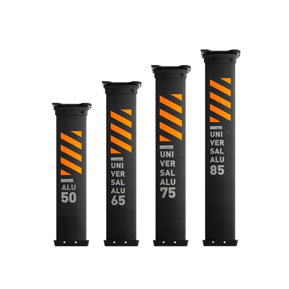 Le nouveau mât Universal ALU à profil plus large et plus rigide avec plaque intégrée est la meilleure combinaison pour un potentiel de vitesse et un contrôle supérieur. La plaque d'aluminium a été optimisée dans ses dimensions et intégrée au mât ALU à l'aide de vis de 8 mm de diamètre pour obtenir une connexion plus solide.