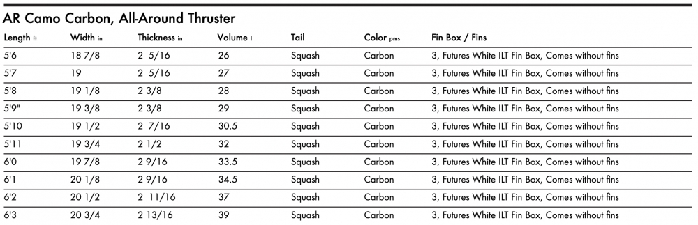Disponible en 5'6« , 5'7 », 5'8« , 5'9 », 5'10« , 5'11 », 6'0« , 6'1 », 6'2« , 6'3 ».