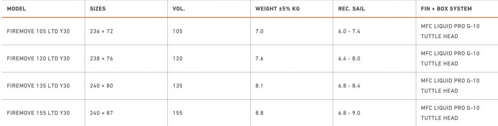 Le Firemove, adoré par les amateurs de freeride, fait peau neuve avec le Y30. Plus long, plus étroit, avec un nose et un tail arrondis pour des performances accrues. Elle conserve sa vivacité grâce à des rails fins et uniques, parfaits pour la maniabilité et la facilité de pilotage au pied. Disponible en quatre tailles (105-155 litres) et trois technologies (LTD, LTE, E-TECH), pour répondre aux besoins de chaque planchiste. Plaisir garanti pour tous les windsurfers, allumant un nouvel amour pour le freeride.