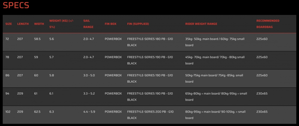 Les caractéristiques spécifiques au freestyle incluent une longueur ultra courte et un volume de nez réduit pour réduire le poids du swing et contrôler la rotation, des footstraps inclinés pour faciliter l'accès au switch stance, et des straps arrière et avant doublement bouchés pour éviter les torsions et supporter des charges plus élevées.