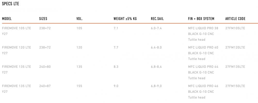 Nous avons changé de taille pour nous assurer que chaque planche réponde aux besoins de chaque rider, de la petite 105 lt à la plus grande 155 lt et en offrant 3 technologies (LTD, LTE et E-TECH).