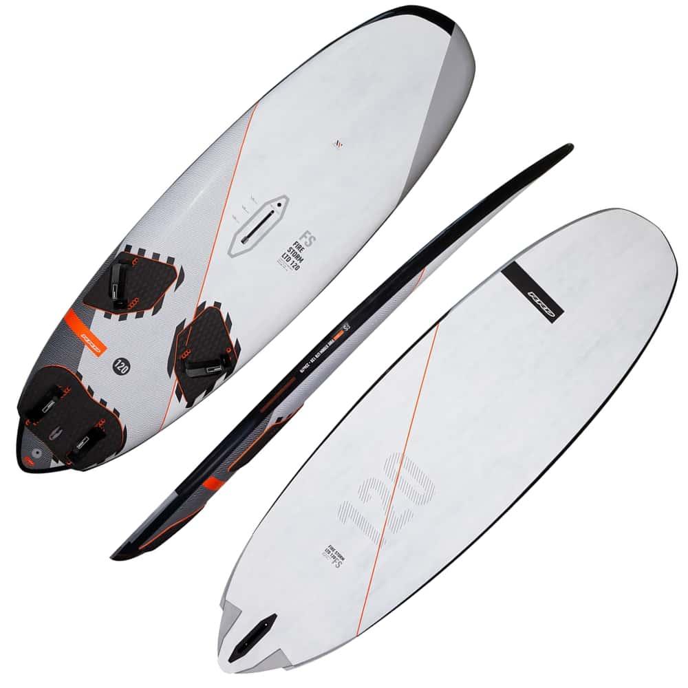 Avec ses lignes parallèles du milieu à l’avant, petits cut-outs et wingered/toro tail , la Firestorm est plus facile à contrôler et à jiber qu’une planche de slalom. Elle excelle donc aussi bien avec des voiles de freerace qu’avec des voiles avec camber.