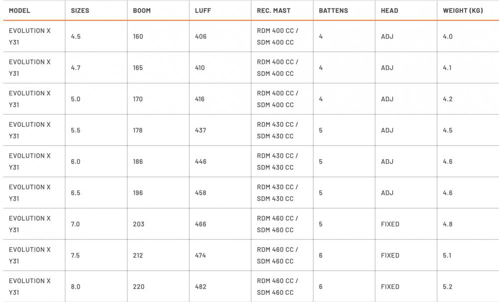 Tout comme l'Evolution, elle est optimisée en fonction de la taille : 4 lattes sur les petites tailles pour plus d'agilité, 7 lattes sur les grandes tailles pour plus de stabilité et de puissance. Le panneau de guindant en Dacron assure une puissance douce et progressive pour un déjaugeage sans effort.