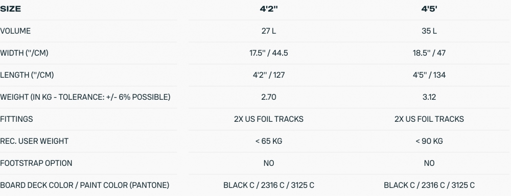 Ses dimensions révisées réduisent l'effet de balancier (swing weight) et offrent une réactivité fulgurante, en faisant la planche de référence pour les pratiquants de Prone Foil les plus exigeants.