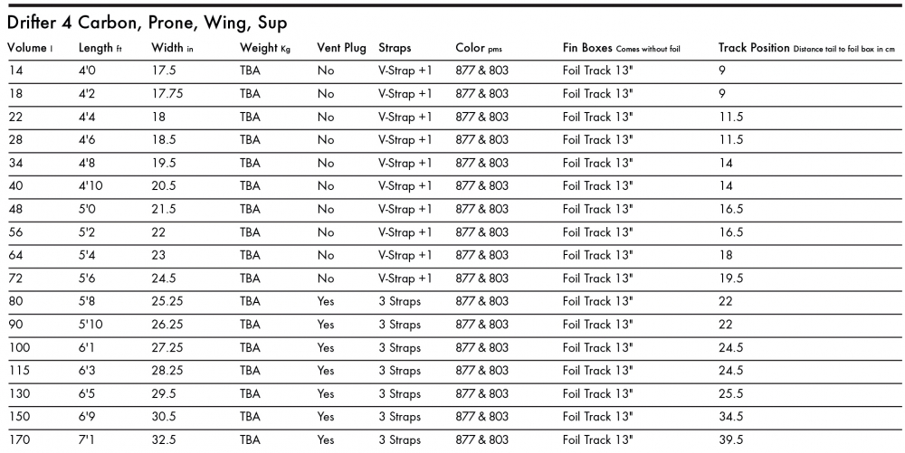 La forme du bottom passe d'un déplacement à l'avant à un double concave jusqu'au bevel tail. Cette forme unique, combinée à une longueur légèrement supérieure et à un outline plus étroit, permet à l'eau de s'écouler sans effort le long de la ligne de flottaison de la planche. La Drifter 4 Carbon est plus stable et a plus de glisse que jamais avec plus de maniabilité pour carver et sauter aussi fort que vous l'osez. Maintenant dans sa 4ème génération, le tail a un biseau plus radical pour le dégagement et la maniabilité. La Drifter 4 Carbon est disponible dans une large gamme de tailles allant de 14 à 170 litres. Idéal pour l'assistance électrique du foil.