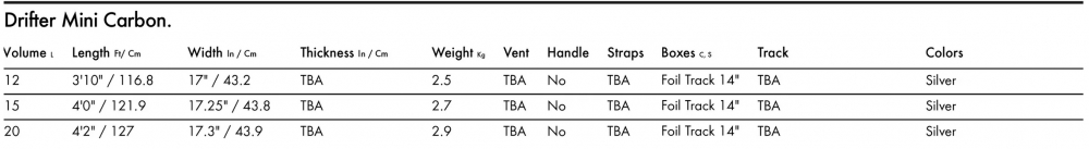 La Drifter Mini combine le meilleur de nos shapes dédiés au surf, au tow-in et au pumping dans un design polyvalent. Elle est idéale pour le tow-in, le wakeboard, le pumping et le kitefoil. Conçue pour les riders recherchant une planche légère et résistante, elle est parfaite pour voyager, se faire tracter par un bateau ou prendre des vagues. Son shape raffiné offre un décollage en douceur et une glisse fluide avec une résistance minimale. Ces plateformes à faible volume facilitent les départs en eau profonde et offrent un meilleur équilibre, tout en garantissant la réactivité instantanée recherchée par les riders progressifs une fois en l'air. Stable pour les départs en tow-in débutants et les wake-starts horizontaux, elle se fait oublier sous les pieds lors des virages et du pumping. Tailles : Disponible en 12 / 3'10", 15 / 4'0", 20 / 4'2". Couleurs : Disponible en argent marbré avec logos noirs.