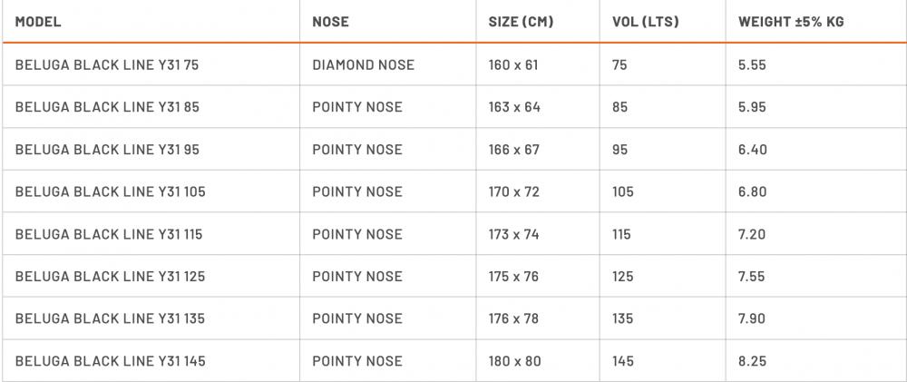 Pour les volumes plus petits conçus pour des performances pures en freestyle et en vagues, la Beluga Y31 présente un shape compact avec un nez en diamant et un tail carré concave. Le volume généreux positionné sur le nez offre une excellente flottabilité, rendant la planche idéale pour les figures de freestyle agressives telles que le pop et le repop.