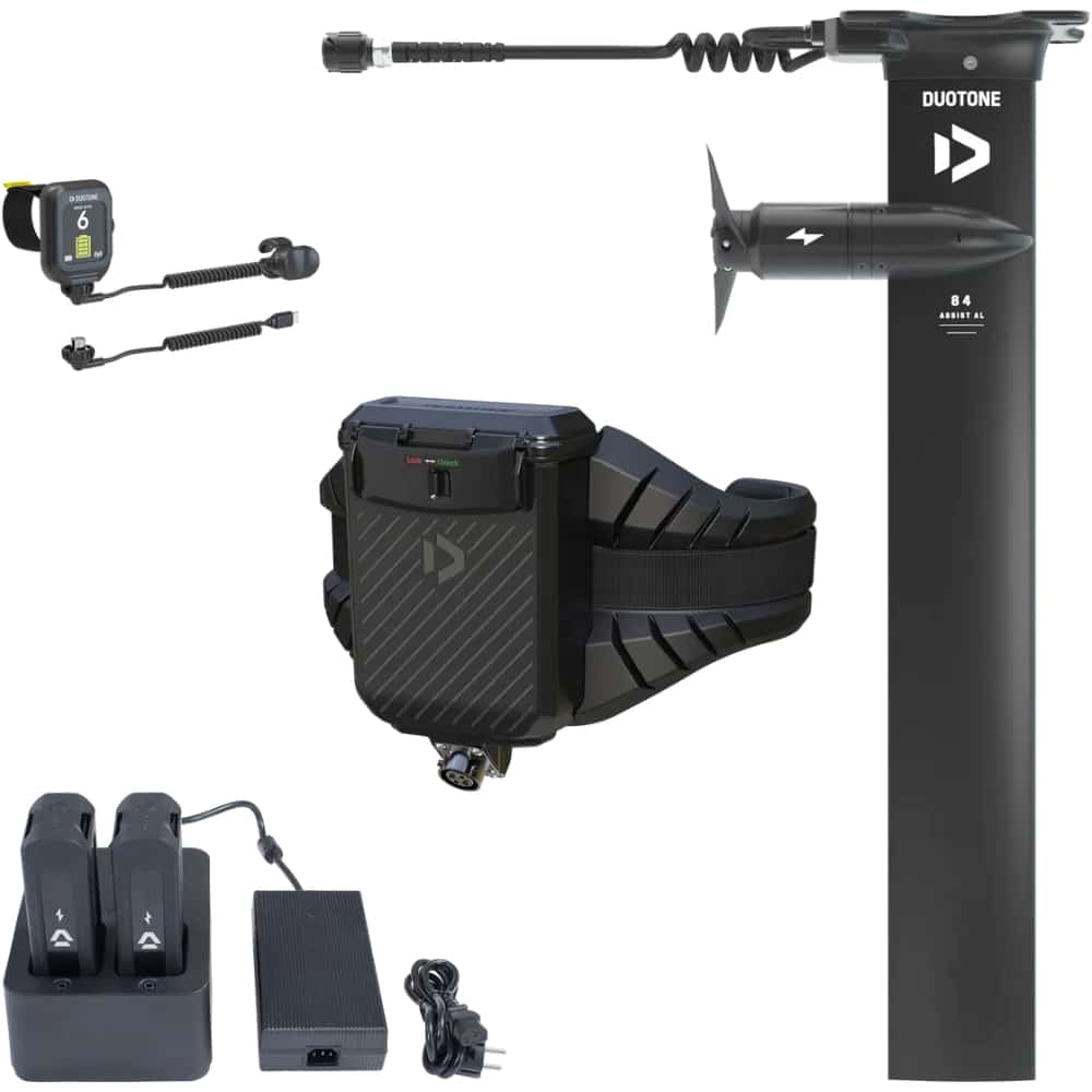 Remarque : Un adaptateur de fuselage est nécessaire pour monter le fuselage sur l’eMast. En plus de l’adaptateur Duotone, nous proposons dix autres options pour combiner le Foil Assist avec ton setup de foil existant. L’adaptateur n’est pas inclus et doit être acheté séparément.