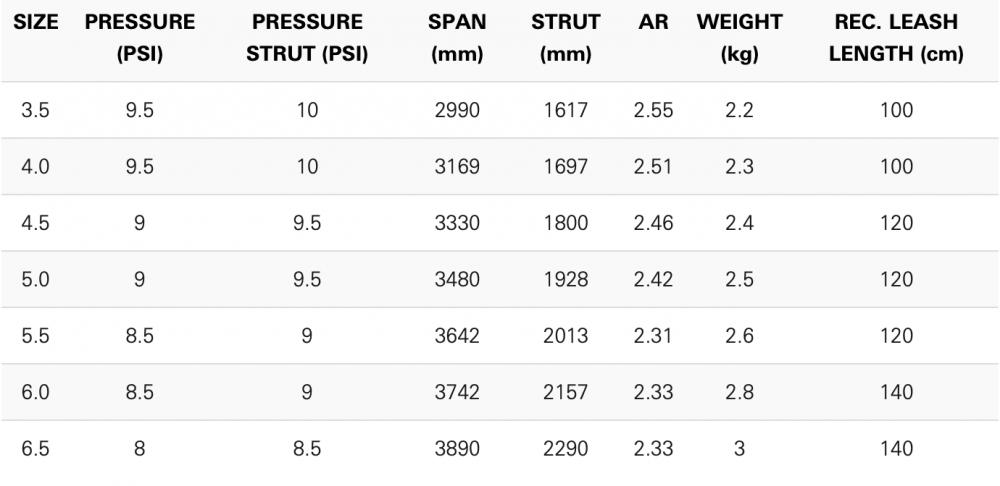 Les tailles ont été choisies avec soin - les demi-mètres carrés de la Fly Pro sont optimaux pour les riders les plus "pro". De 3,5 à 6,5 - vous pouvez trouver votre aile NeilPryde premium idéale.