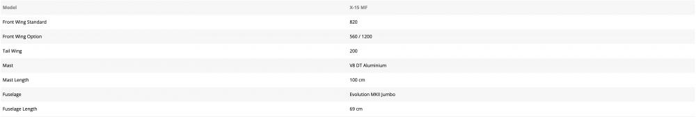 *Le set de foils comprend en standard l'aile avant 820, qui est la meilleure taille pour la plupart des conditions et pour la plupart des poids de pilotes. Les ailes 560 et 1200 sont disponibles séparément en tant que pièces de rechange, pour un ajustement plus poussé et pour s'adapter à une gamme complète de poids et de niveaux de compétence des pilotes.