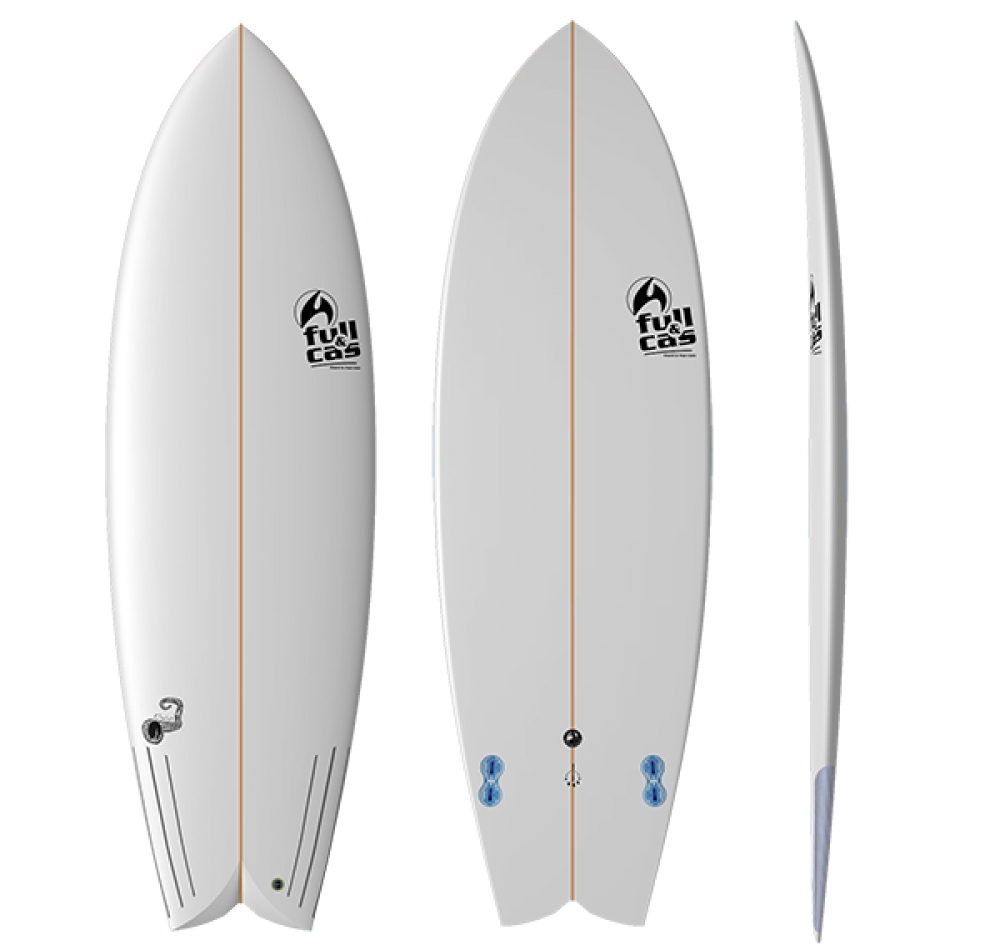 6/ Les boards Full and Cas sont livrées avec des plugs d'aileron gris en version FCS Fusion 1 et les ailerons FCS E8