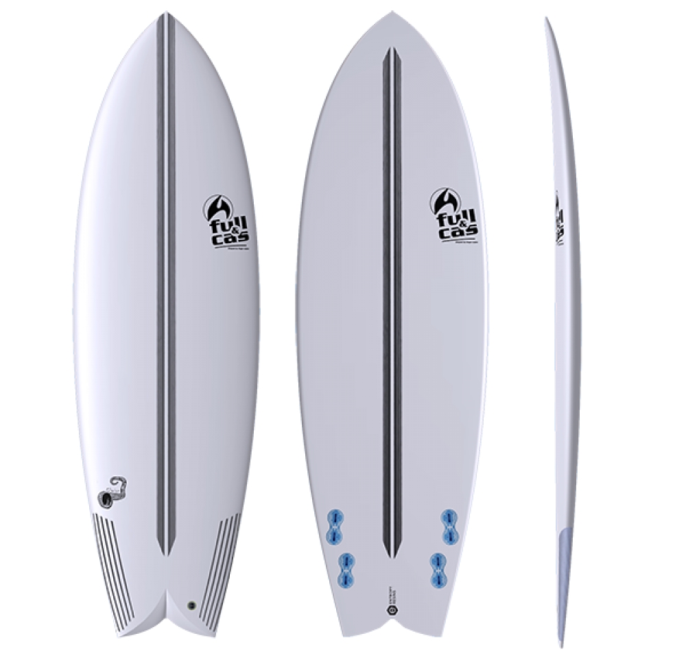 6/ Les boards Full and Cas sont livrées avec des plugs d'aileron gris en version FCS Fusion 1 et les ailerons FCS E8