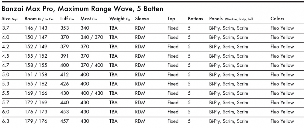 La toute nouvelle Banzai Max Pro est notre voile de vagues à 5 lattes. Elle offre un contrôle et une portée accrus dans des conditions très variées. Les 5 lattes augmentent la stabilité générale et les vitesses maximales.