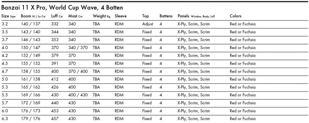 Caractéristique de maniabilité : Le lift est légèrement plus haut et plus en arrière que sur la Banzai Surf Pro et la Banzai Max Pro, ce qui favorise une sensation plus droite mais donne aussi une touche de pression sur l'arrière de la main pour plus d'accélérateur quand vous en avez besoin. Une sensation directe mais flexible vous permet de rester connecté à tout moment pendant les manœuvres. La Banzai 11 Pro est notre voile de vagues performante pour la Coupe du Monde, conçue pour gagner dans toutes les conditions de vagues et de manœuvres.