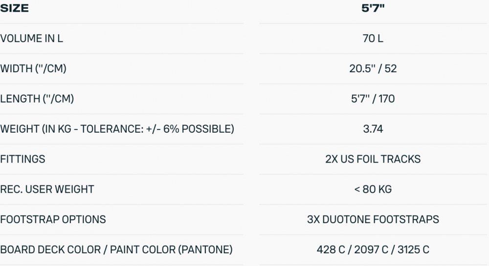 Disponible en 5’7’’ x 20,5’’ (70 L), le Skybrid D/LAB s’adresse aux pratiquants qui veulent repousser les limites grâce aux dernières innovations en freeride, freefly dynamique, surf de petites vagues ou Parawing Downwind.