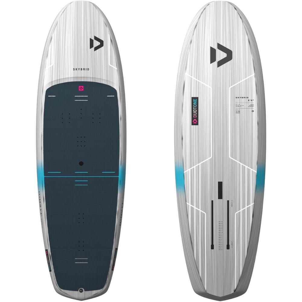 Grâce à son profil épuré, la Skybrid 2026 glisse avec aisance et décolle en douceur, pour une navigation en foil à la fois dynamique et réactive. Sa nouvelle queue en diamant, son pont élargi et ses rails retravaillés renforcent sa stabilité et sa maniabilité, permettant d'attaquer les virages et les transitions serrées de façon fluide et en toute confiance. Le pont rabaissé vous rapproche du foil pour un contrôle direct et une précision optimale. Les multiples options de position des straps et les rails de foil allongés permettent une personnalisation complète selon votre style, tandis que la construction Vacuum Epoxy Bamboo Sandwich allie légèreté, durabilité et performance durable saison après saison. Disponible en différentes tailles allant de 5’9’’ (80 l) à 6’7’’ (130 l), la Skybrid 2026 convient à un large éventail de pratiquants. C'est le choix idéal tant pour les pratiquants de niveaux intermédiaires en progression que pour les confirmés. La DUOTONE Skybrid 2026 est conçue pour faire évoluer votre pratique avec précision, agilité et fluidité.