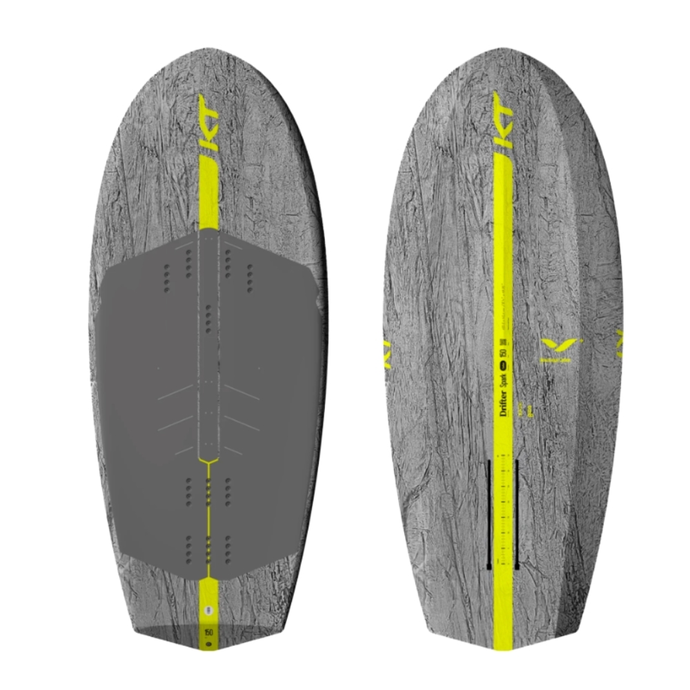 Le Drifter Spark est conçu comme la première étape idéale vers le foil. L'accent est mis sur la stabilité statique, l'équilibre facile et la confiance sous le vent, permettant ainsi aux débutants ou aux gabarits plus lourds de se tenir debout confortablement et d'apprendre à maîtriser la planche et l'aile sans se soucier de la vitesse de décollage. Grâce à sa largeur généreuse et à son volume soigneusement réparti, le Spark permet de se tenir debout détendu, même sans vent ni mouvement vers l'avant. Cette stabilité le rend particulièrement efficace par vent léger, pour les premiers pas en tow foil, les sessions d'initiation au Foil Assist ou à l'eFoil, et pour l'entrée en SUP foil surf, où la prévisibilité et l'équilibre sont essentiels pour gagner en confiance. Tailles : Disponible en 130 litres / 6'4", 150 litres / 6'8", 170 litres / 7'10". Couleurs : Disponible en argent marbré avec logos jaune fluo.