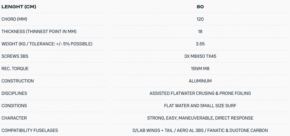 Le Foil Cruise Set AL comprend les éléments suivants :