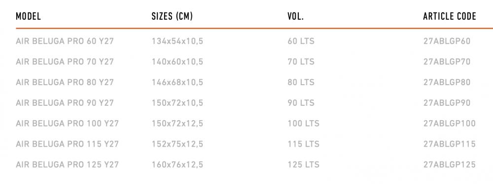L’Air Beluga Pro est un bijou pour les amateurs de wingfoil – un regard vers l’avenir. La plaque de carbone super légère et rigide sur le fond, lorsqu’elle est utilisée sur des planches de petite taille, permet d’atteindre des performances extraordinaires pour la vitesse, le carving et le saut. Avec sept tailles pour tous les riders expérimentés, il y a une planche tous les 10 litres de 60 à 125 litres. Court, léger et portable dans un sac compact. Que recherchez-vous de plus ? L’Air Beluga Pro est fourni avec un compresseur à double action, 3 sangles ultralégères et un sac à dos rembourré confortable qui a de la place pour votre planche, votre foil, votre aile et vos accessoires pour aller dans l’eau.